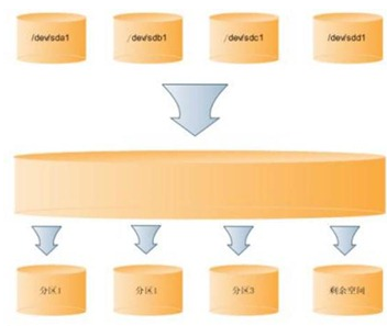 LVM管理的方式非常简单,就是通过将底层的物料磁盘抽象并封装起来,然后以逻辑的方式呈现给上层应用。