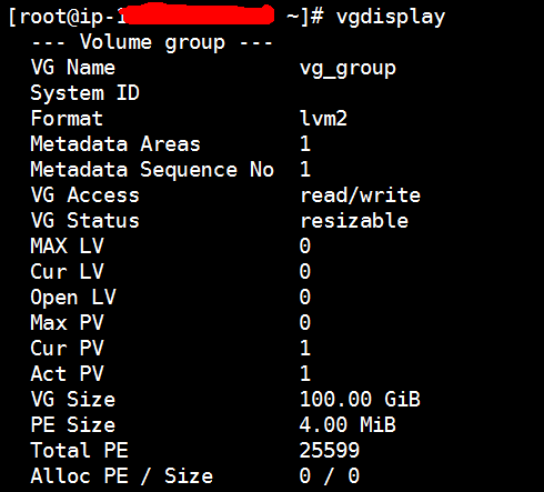 vgdisplay [卷组名] 显示卷组的属性信息 |