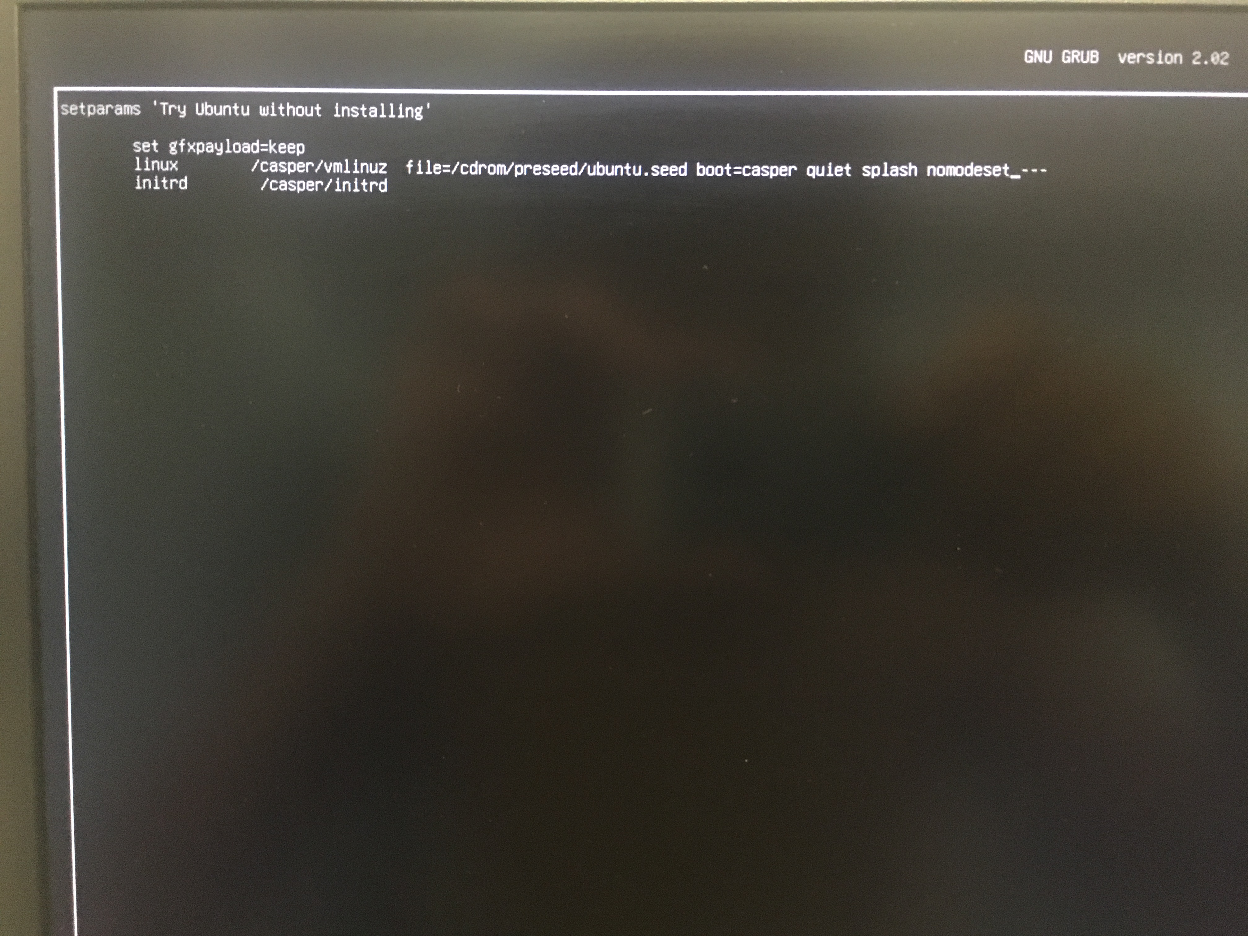 GRUB_CMDLINE_LINUX_DEFAULT="quiet splash nomodeset"