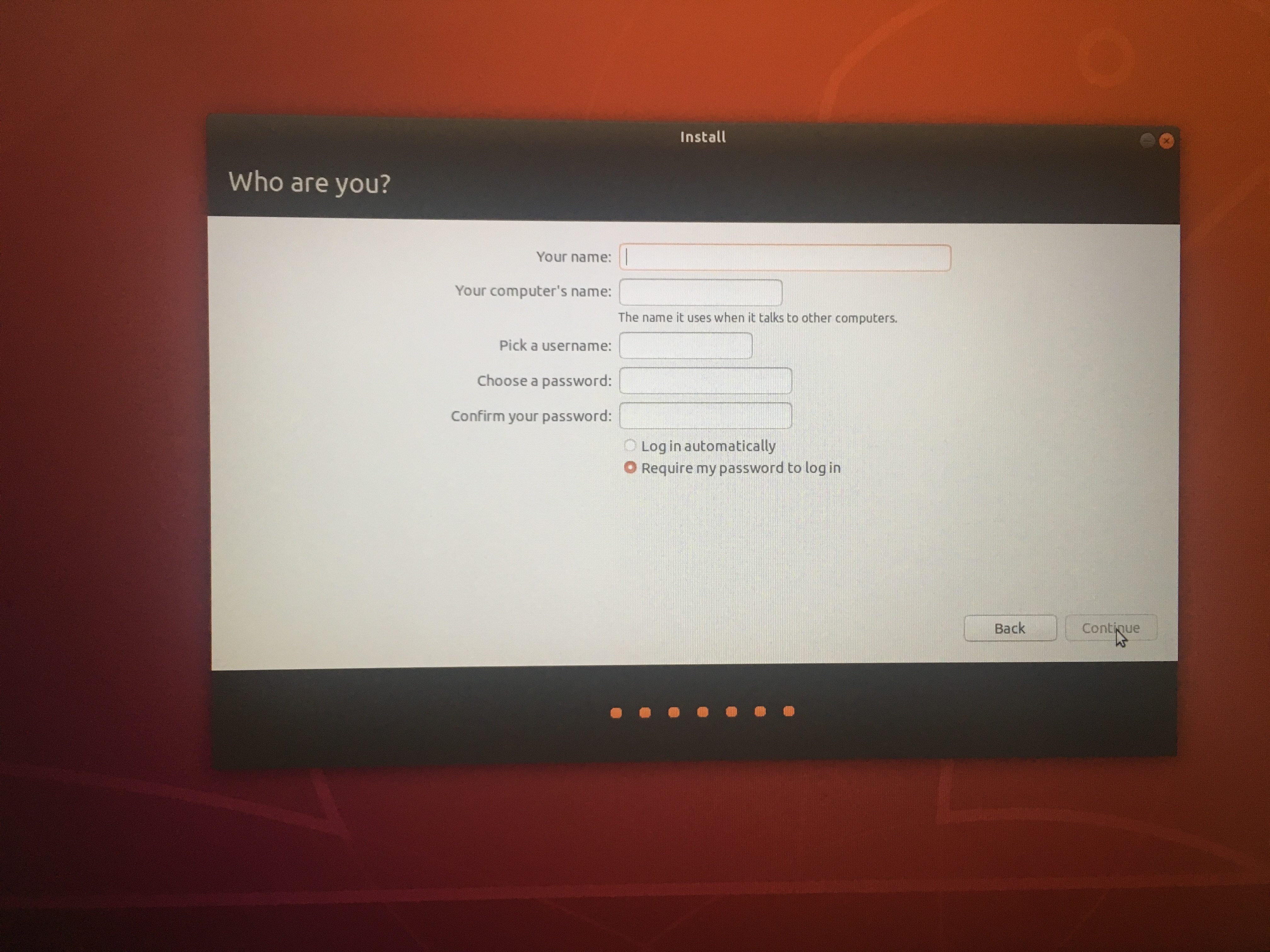 这里选择英文,如果选择中文,在装完系统后 “桌面” 的路径会是 “桌面” 而不是 “Desktop”。点击Continue。