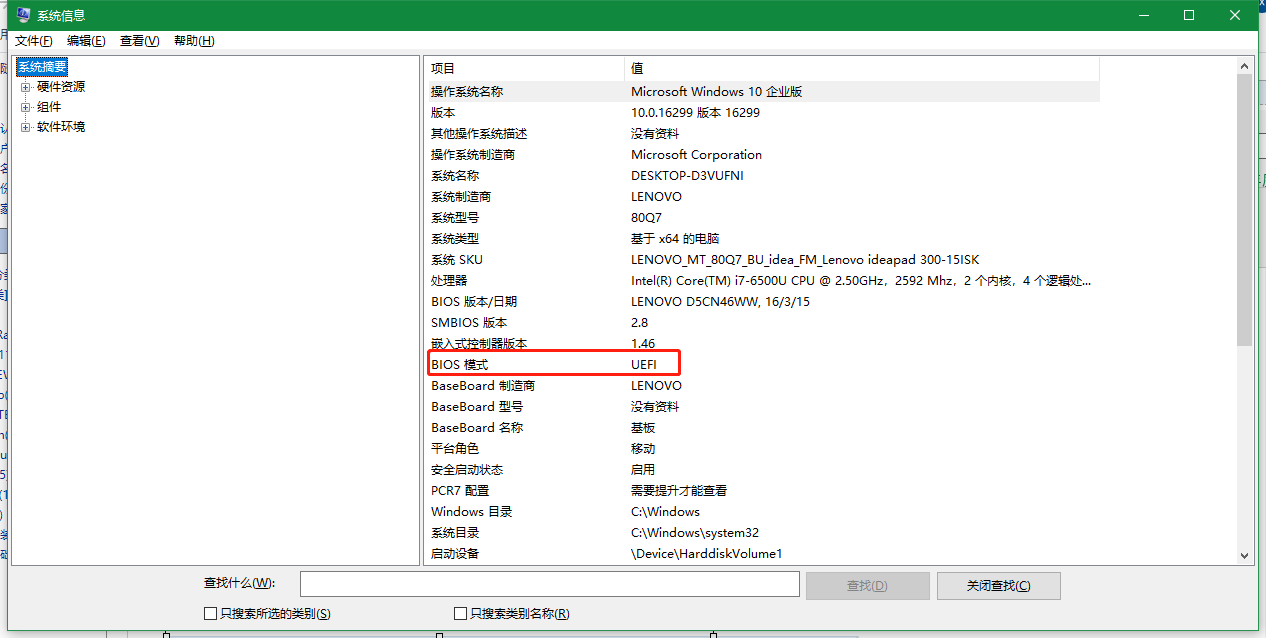 怎么看自己电脑是MBR还是UEFI:win+r输入msinfo32回车确认,出现以下信息