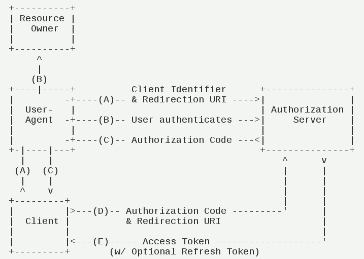 流程如上图。第一步,客户端的前端页面(图中UserAgent)将用户跳转到 授权服务器(Authorization Server)里进行授权,授权完成后,返回 授权码(Authorization Code)