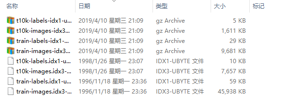 注意:这里也可以使用Caffe自带的get_mnist.sh运行得到解压的数据集(我的运行报错,显示缺少wget),但是我这里是自己去官网下载的,效果是一样的。