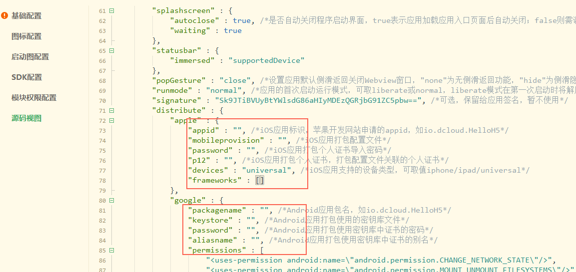 android打包填入相应的包名等信息;ios打包填入标识等信息