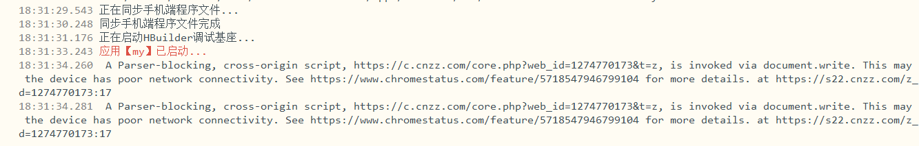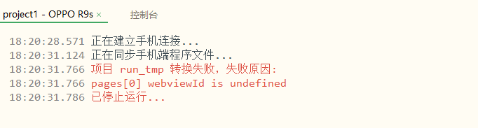 手机上出现运行项目,查看控制台: