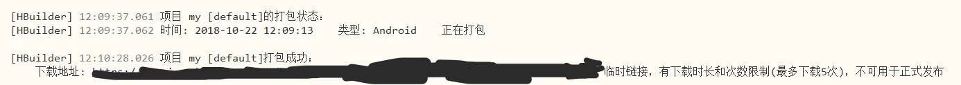 打包成功,会给一个临时的下载链接,这样即打包成功。