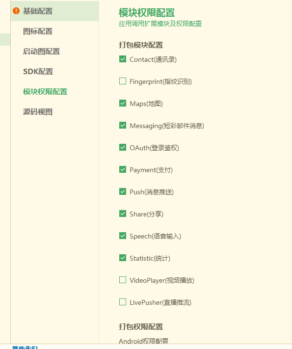 根据app业务需求,配置对应的模块。