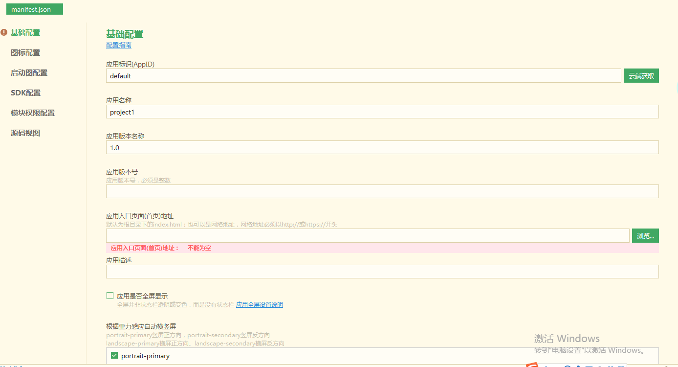 打开项目,找到manifest.json文件,依次配置相关配置文件。