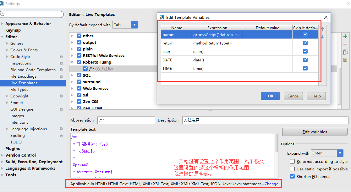 2.2、方法注释模板修改