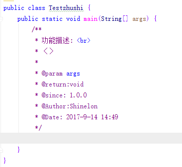 在完成如上配置后,只需在方法内执行/**+Enter键即可生成注释,切记这里说的是方法内部,因为methodParameters()的作用域只在方法内部,这也是Intellij IDEA比较蛋疼的一点。