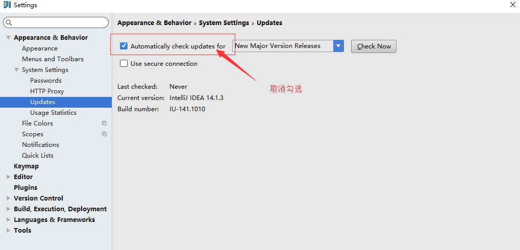 1.1、关闭Intellij IDEA自动更新