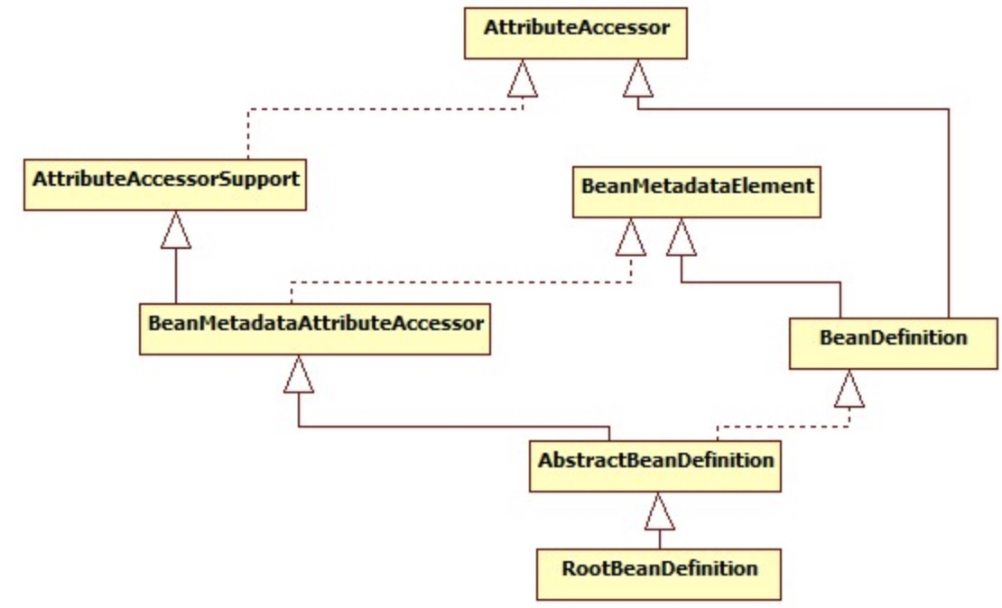 SpringIOC容器管理了我们定义的各种Bean对象及其相互的关系。在BeanFactory容器中,每一个注入对象都对应一个BeanDefinition实例对象,该实例对象负责保存注入对象的所有必要信息,包括其对应的对象的class类型、是否是抽象类、构造方法参数以及其他属性等。当客户端向BeanFactory请求相应对象的时候,BeanFactory会通过这些信息为客户端返回一个完备可用的对象实例。其继承体系如下: