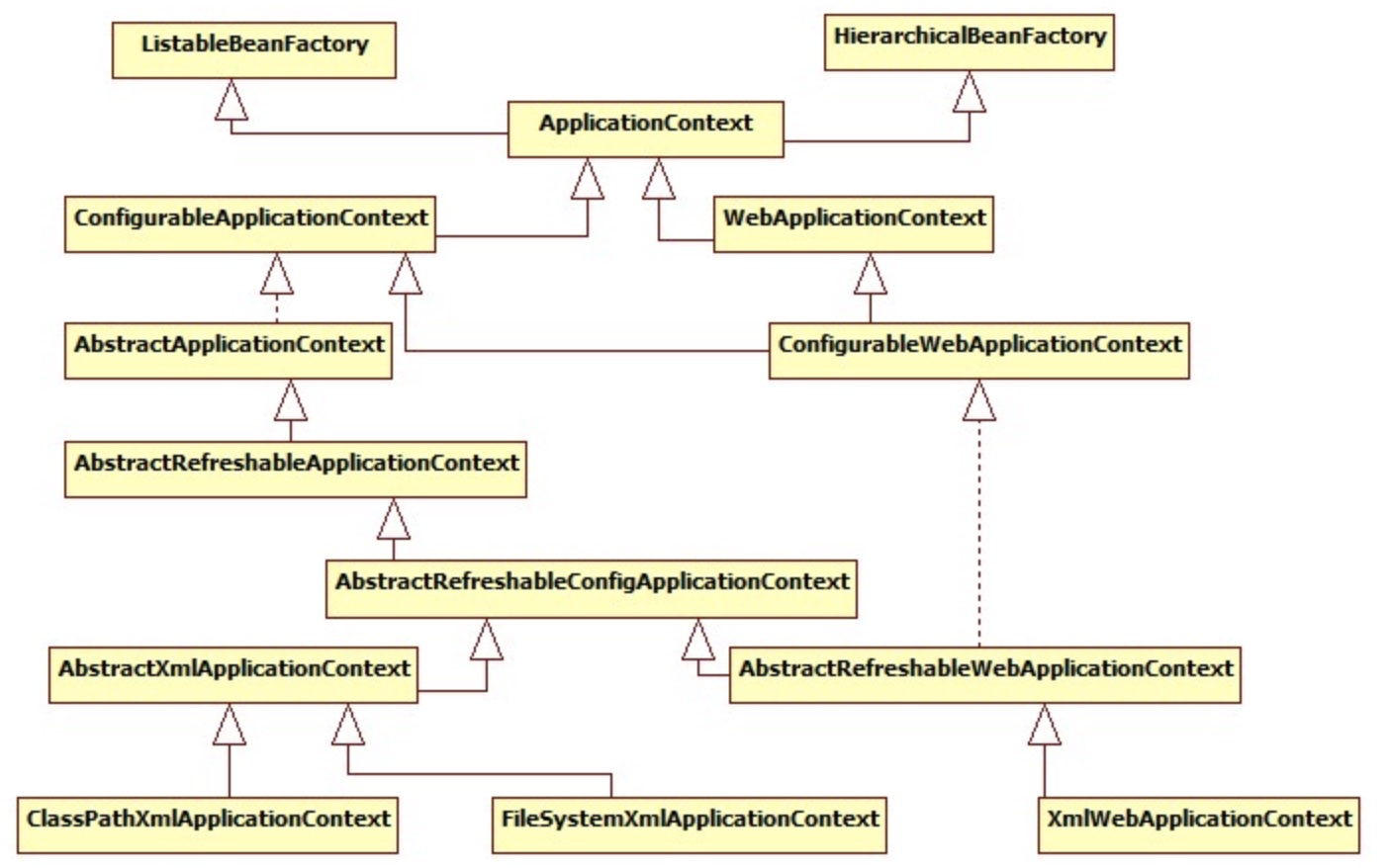 ApplicationContext允许上下文嵌套,通过保持父上下文可以维持一个上下文体系。对于bean的查找可以在这个上下文体系中发生,首先检查当前上下文,其次是父上下文,逐级向上,这样为不同的Spring应用提供了一个共享的bean定义环境。