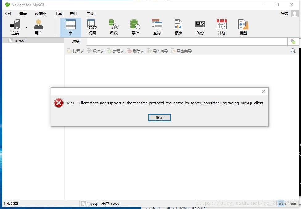 今天在电脑上安装了Mysql 8.0.11,然后又屁颠屁颠地安装了Navicat for MySQL,打开Navicat准备链接数据库的时候出现了如下提示:
