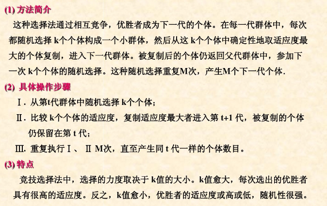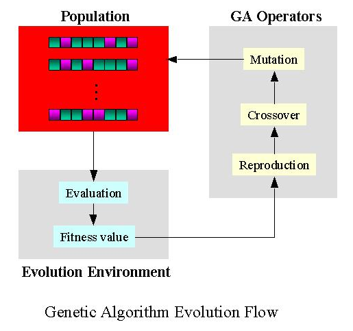 - 进化-选择(selection):以一定的概率从种群中选择若干个个体。一般,选择过程是一种基于适应度的优胜劣汰的过程。