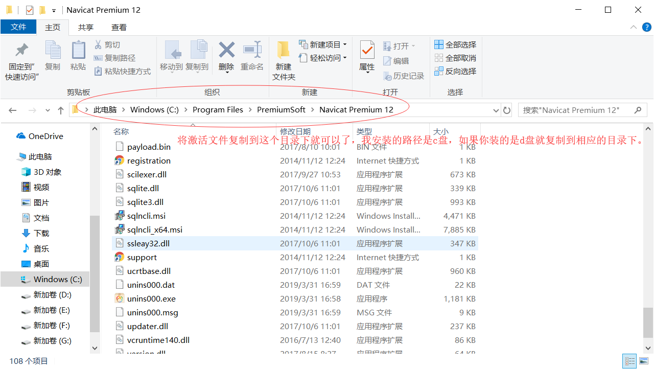 4.将里面的两个文件复制到Navicat Premium的安装路径下。(即C:\Program Files\PremiumSoft\Navicat Premium 12目录下)