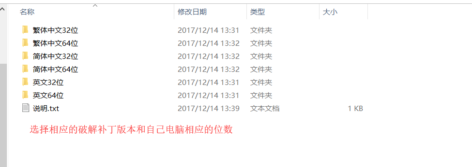 3.下载解压破解补丁,如下,我的电脑是64位,所以选择 “简体中文64位”