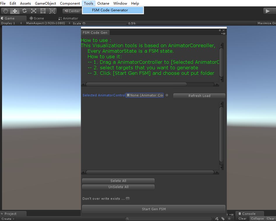 1. Open Editor panel on menu bar [Tools/FSM Code Generator]
