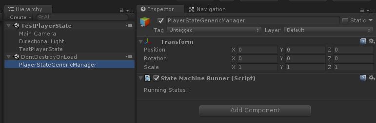 3. PlayerStateGenericManager.cs : This is the manager for running all added states, control the life cycles, and tick states every frame