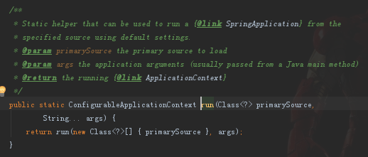 从上面代码可以看出,别看它只是定义了 @SpringBootApplication 这个Annotation 和 调用SpringApplication.run方法,但是它们实现的功能可不是一星半点的。