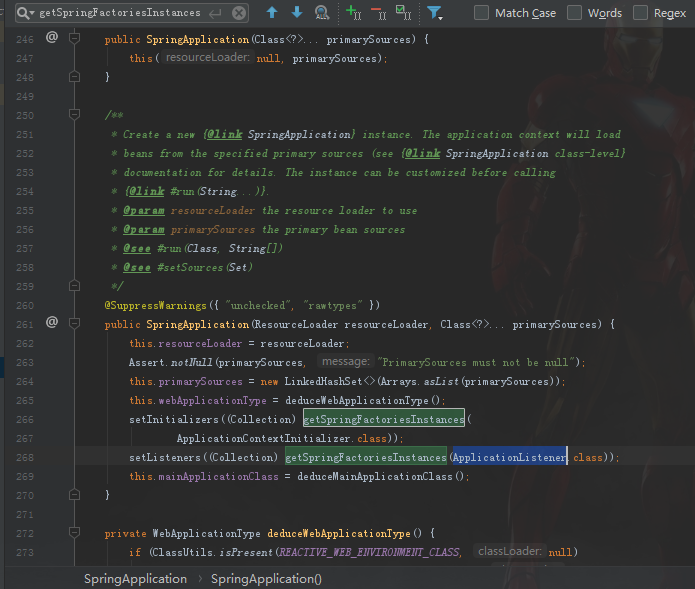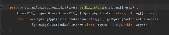 这里大家重点关注一下源代码中getSpringFacoriesInstances方法, ApplicationListener接口,ApplicationContextInitializer接口,这些接口都是通过SpringFactoriesLoader从META-INF/spring.factories文件里加载的