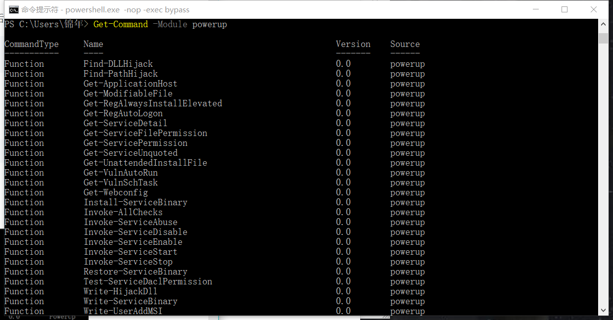 C:\Windows\system32>net user powerup 1 /add - 执行Invoke-AllChecks: