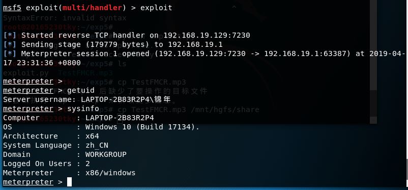 - 输入命令sessions -i 3进入,成功获取了目标机