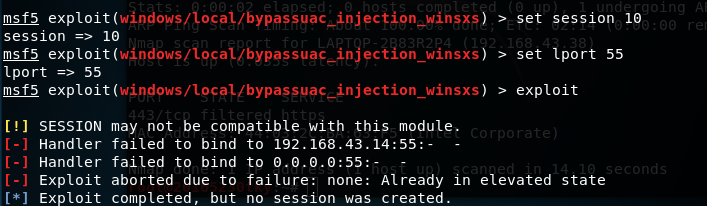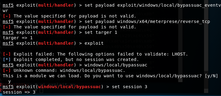 - 可以利用metasploit下已有的提权漏洞,如ms13_053,ms14_058,ms16_016,ms16_032等。
