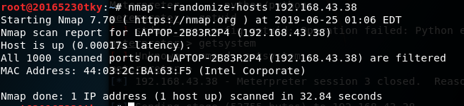 选项–randomize-host用于随机 顺序扫描指定目标。–randomize-host有助于防止因连续 扫描多个目标而防火墙和入侵检测系统检测到。