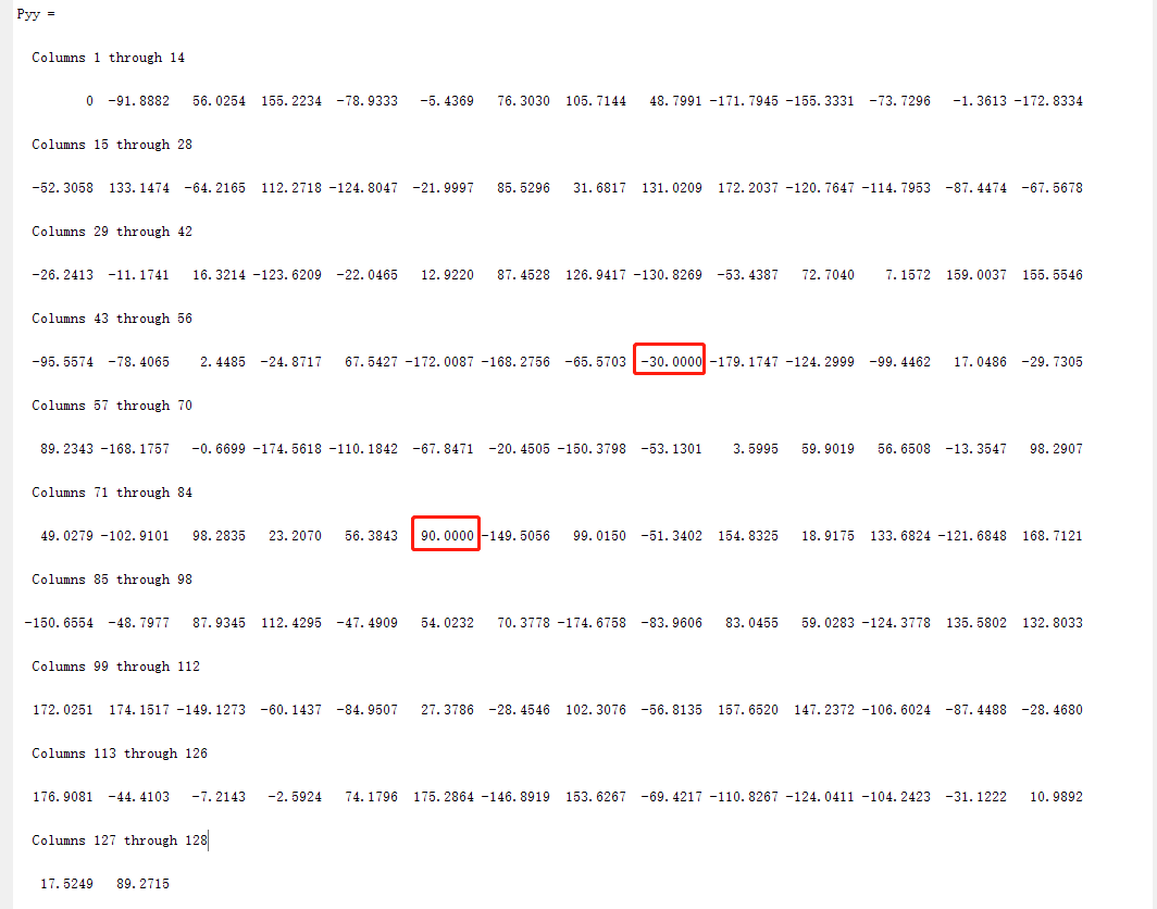 45 Pyy(i)=Pyy(i)*180/pi; %换算为角度