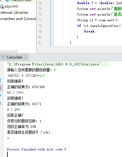 System.out.println("是否继续生成题目?(y/n):" );//多次生成题目,直到用户选择退出