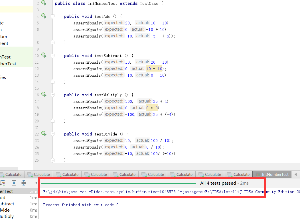 1、设计一个IntNumber类,用来实现整数的四则运算 2、设计一个Judgement类,用来判断用户输入与实际计算值是否相等,并统计正确的次数 3、设计主类,生成随机数,生成题目,并判断正确率 4、设计测试类,测试整数类的四则运算