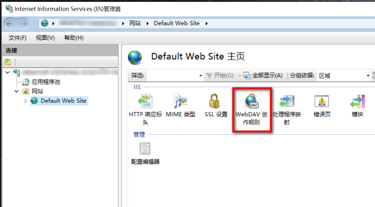 安装后就会在IIS中出现“WebDAV 创作规则”模块: