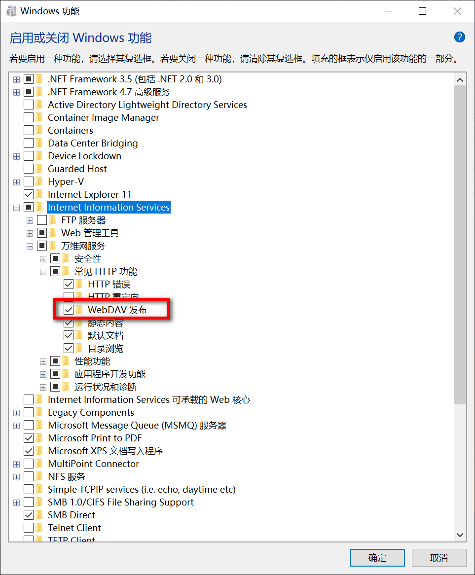 为了安全上的考虑,IIS默认并不会启动WebDAV的功能,因此必须另外来激活它。