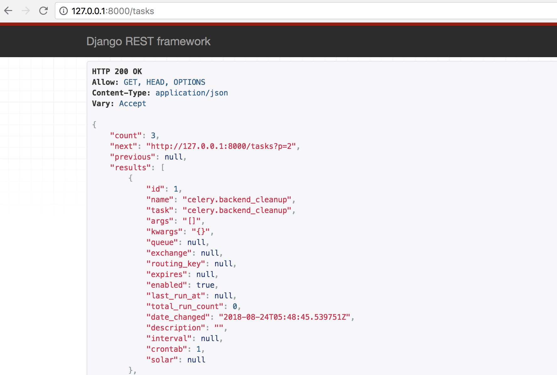 django-celery-beat插件本质上是对数据库表变化检查,一旦有数据库表改变,调度器重新读取任务进行调度,所以如果想自己定制的任务页面,只需要操作beat插件的四张表就可以了。当然你还可以自己定义调度器,django-celery-beat插件已经内置了model,只需要进行导入便可进行orm操作,以下我用django reset api进行示例: