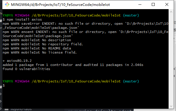 执行完后会发现uniapp和vue的项目一样,多了一个node_module文件夹,文件夹中多了一个axios文件夹,即安装成功。