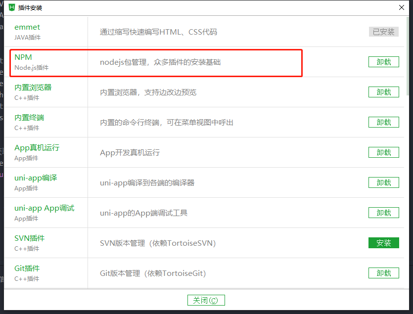 在HbuilderX顶部菜单,选择工具—>插件安装,选择NPM安装。