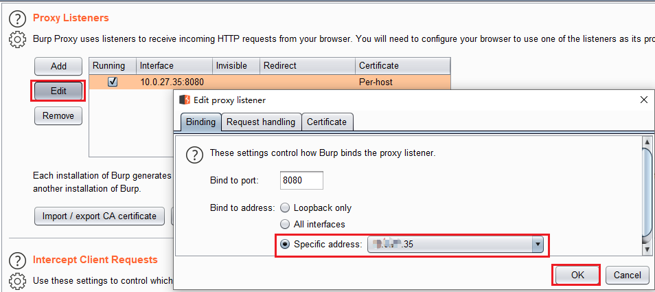修改代理监听,选择这个具体地址(Specific address)。注意,Android端也得修改成这个IP。