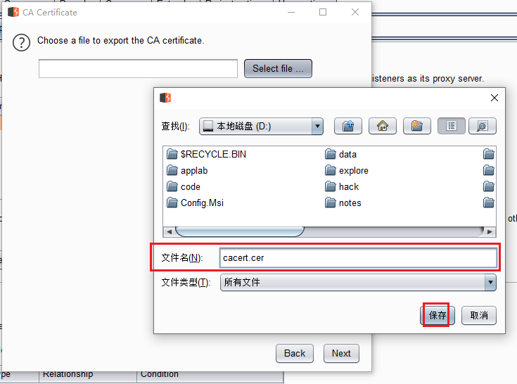 先导出cacert.cer证书