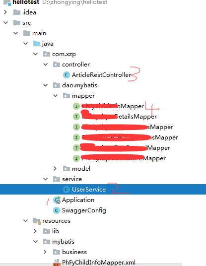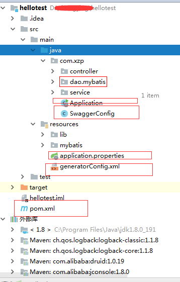 截图中看到的内容包含了 对swagger 及 springboot等相关包及插件的引用。后面还需要添加mybatis的包的引用 ,及mybatis 对应的框架对应的mapper类的相关配置的xml文件的引用。