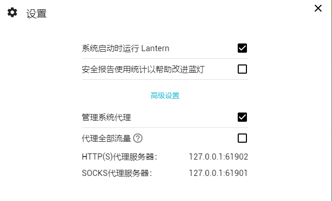 - 先查询下自己的梯子端口,我用的蓝灯如下