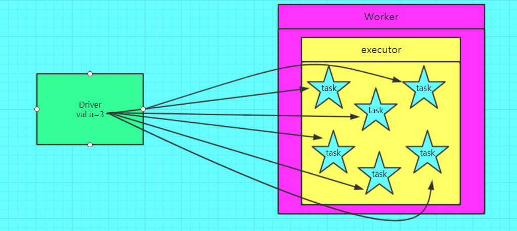 4、如果executor端用到了Driver的变量,如果不使用广播变量在Executor有多少task就有多少Driver端的变量副本。
