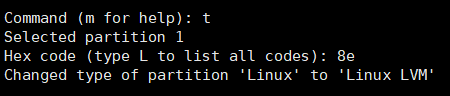 8、输入 8e 就把分区格式修改为了 Linux LVM 格式