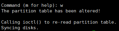 9、最后输入 w 保存修改即完成了分区的过程