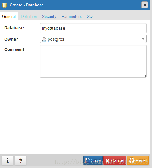 输入database的名字,如下图,输入完成即可选择save进行保存。这样基本上就可以了,其他选项可以根据自身需要进行选择。