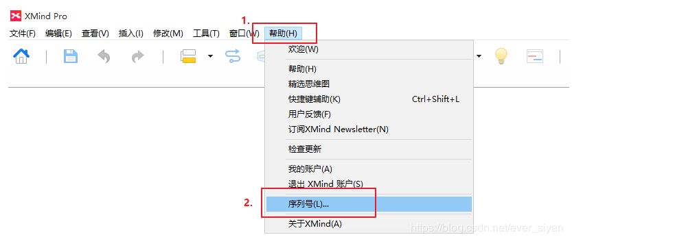 打开XMind.exe程序,点击【帮助】—>【序列号】—>输入序列号即可完成激活。(序列号也在步骤1的链接下载的文件中)