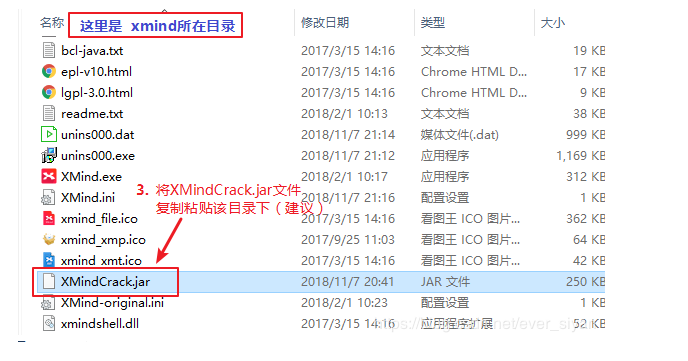 安装好后右击桌面图标-->打开文件所在位置-->进入安装目录,将XMindCrack.jar文件(包含在步骤1链接下载的文件中)复制粘贴该目录下【可以不复制】。