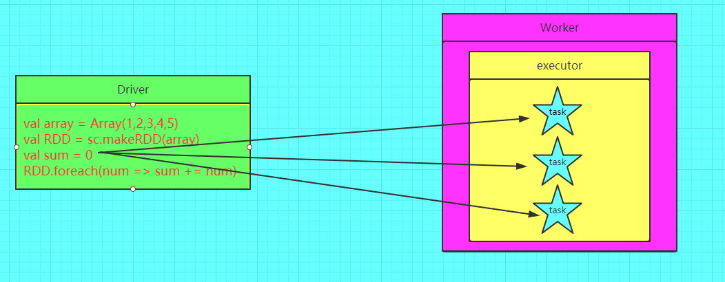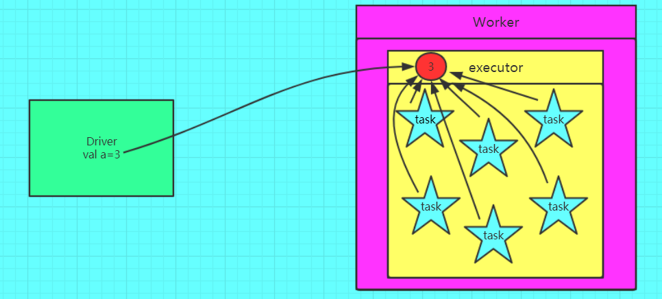 4、如果executor端用到了Driver的变量,如果不使用广播变量在Executor有多少task就有多少Driver端的变量副本。