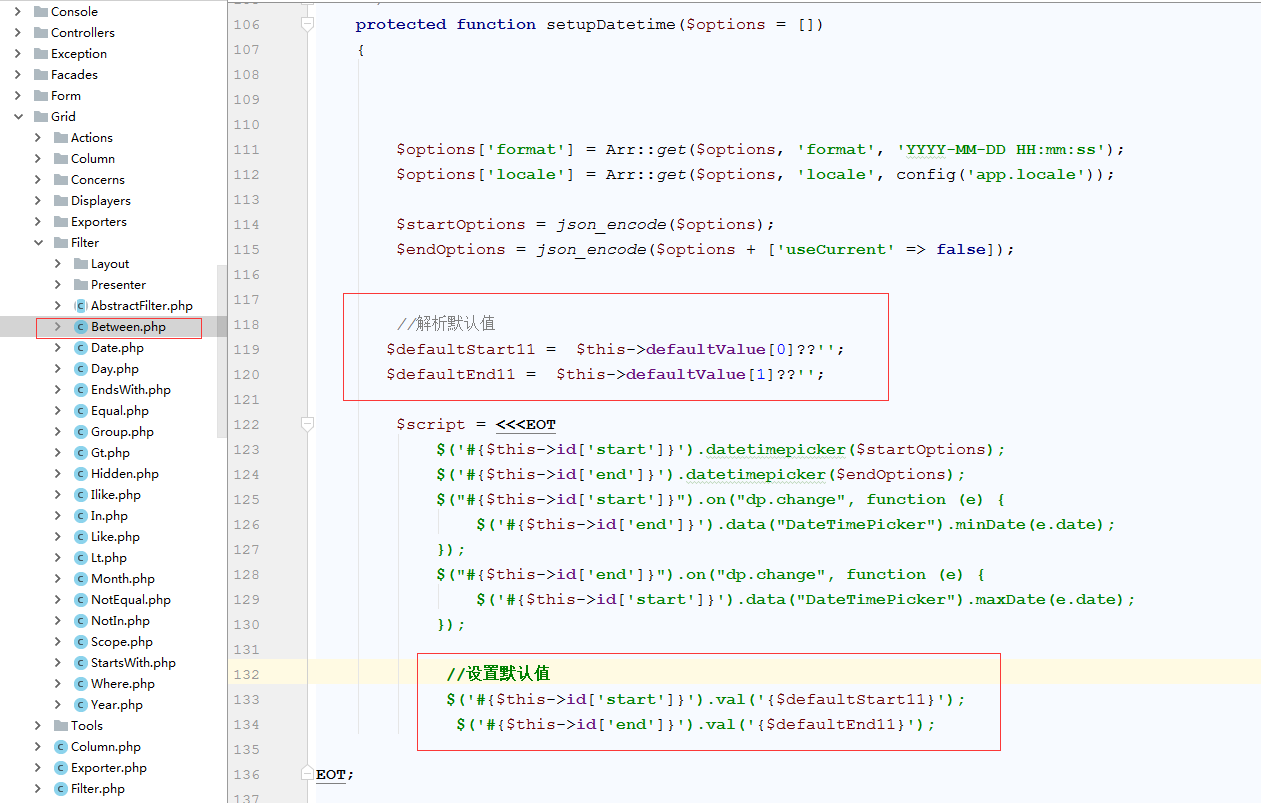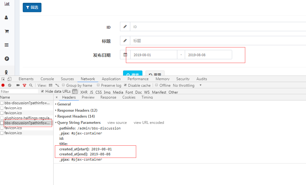 设置这个数据,是因为laraval-admin的日期查询条件就是这样提交到前端的,见下图: