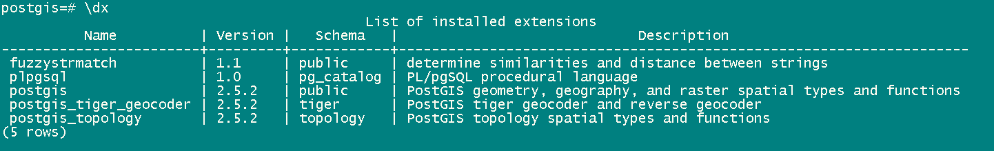CREATE EXTENSION postgis_tiger_geocoder;